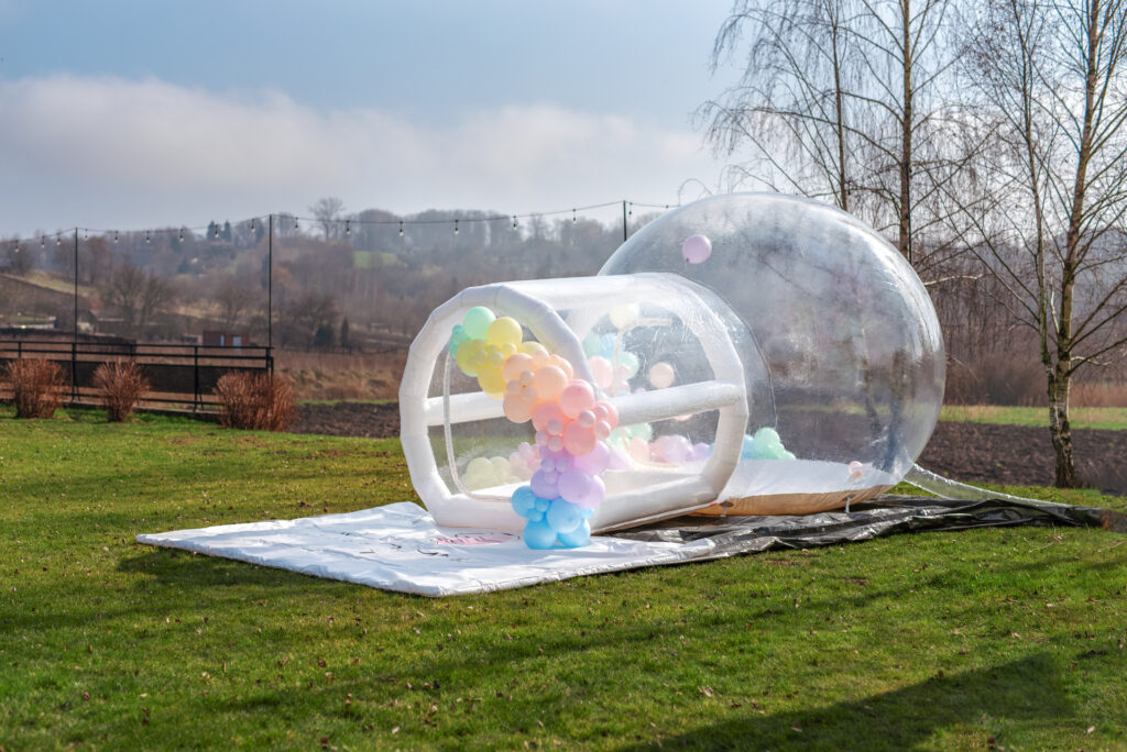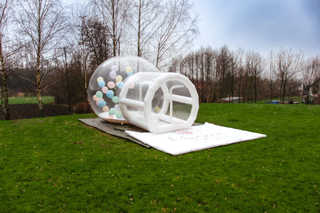 Cena wynajmu białego dmuchanego Bubble House oscyluje w przedziale od 1000 zł do 3000 zł