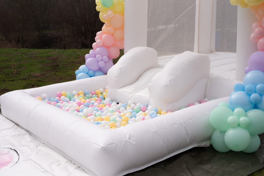 Marzysz o urządzeniu imprezy, która zapewni niezapomnianą zabawę dla najmłodszych? Nasz biały zamek dmuchany ze zjeżdżalnią i basenem plastikowych kuleczek to doskonały wybór!
