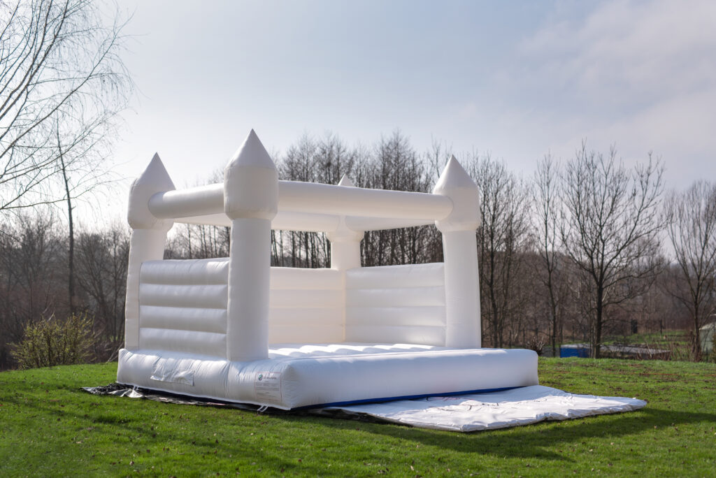 Cena wynajmu białego, klasycznego dmuchanego zamku oscyluje w przedziale od 1000 zł do 3000 zł